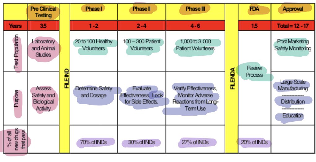 ايش التجارب preclinical و clinical الي راح يمر فيها دوائي الين يجيه القبول من FDA عشان يطرح بالسوق ..