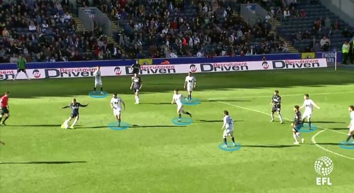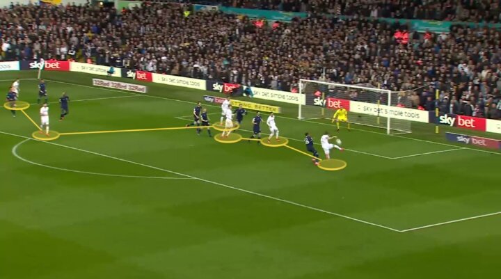 إذ بدأ بـ روبي غوتس الذي لعب مباراته الأولى مع الفريق وتعرض ليدز للضغط في تلك المنطقة مما يوضح الحاجة لوجود موارد كافية يُعتمد عليها عند الحاجة.