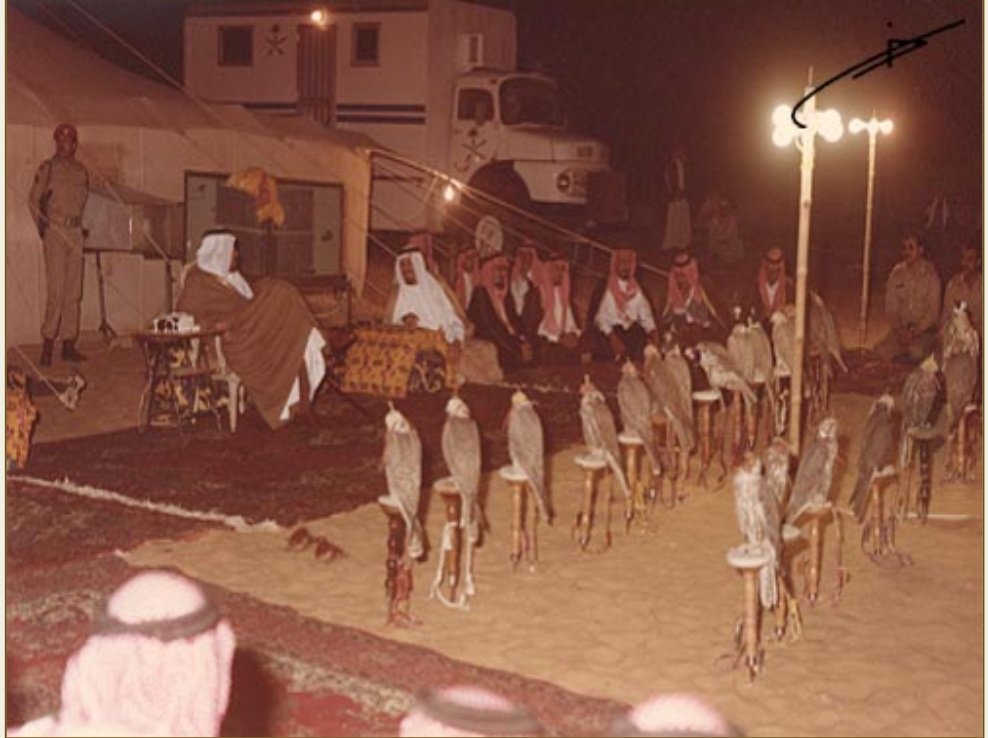 لم يكن #الملك_خالد_بن_عبدالعزيز يشعر بالسعادة الحقيقية إلا في أثناء #الصيد في أعماق الصحراء، كان يصحو قبيل الفجر ويقطع النهار كله في #القنص ، ولا يعود إلا مع الغروب كان يقطع في اليوم الواحد أحيانا أكثر من مائتي كيلو متر [بالسيارة] في مناطق صعبة.
