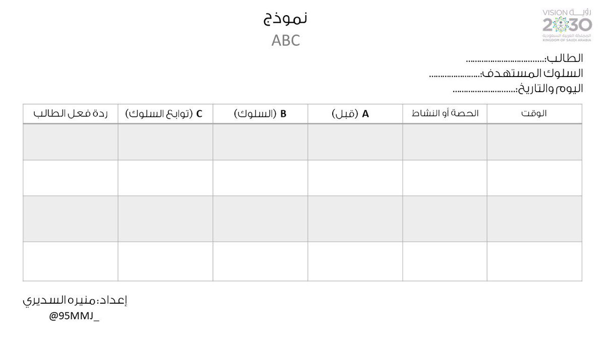 نموذج ABC يمكن تحميله من خلال الرابط ومتابعة سلوك الطفل أثناء التدخل العلاجي📊