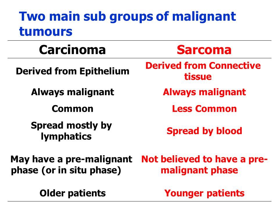 يوضح هذا الجدول الفرق بين كارسينوما وساركوما 👇🏻