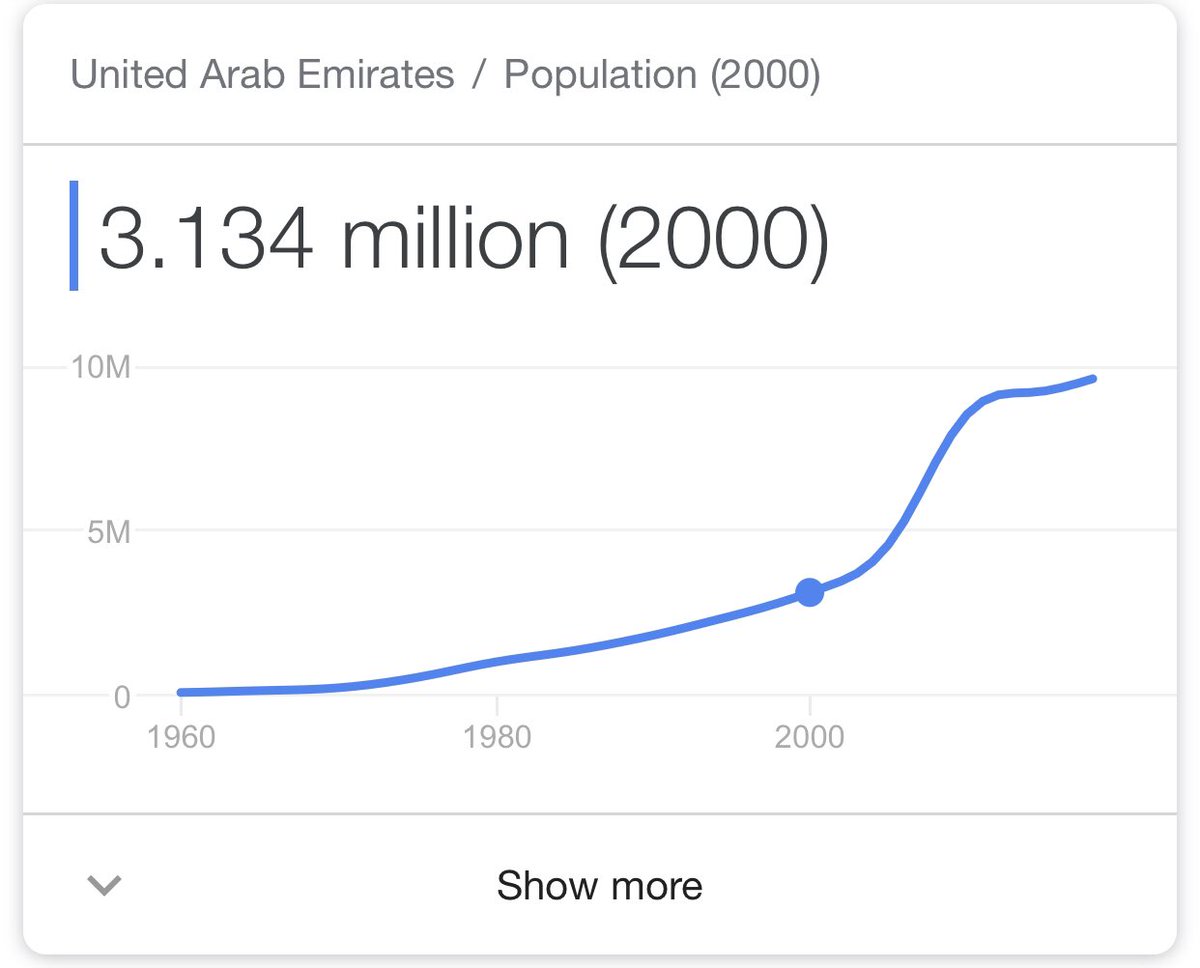 عندما نعود لعقد #دبي الذهبي وهو العقد قبل الفائت فنراه قد إقترن بنمو تعداد سكان الدولة بشكل غير مسبوق