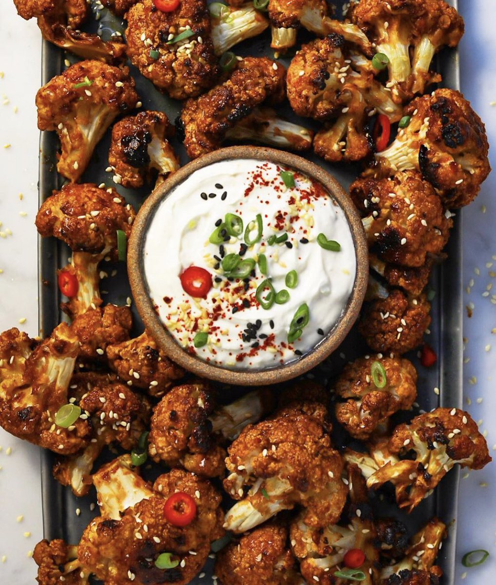 الزهرة الحارة مع الجبنة وصلصة الطحينة.🧀🥦