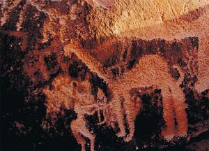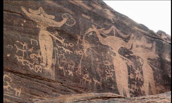 “الفنون البدائية على الرسوم والنقوش التي وجدت داخل المغاور أو فوق الصخور والتي تركها إنسان العصر الحجري في الشويمس وجبّه في منطقة حائل”