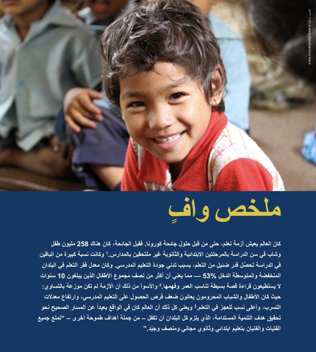 أبرز ماجاء في تقرير فريق مجموعة البنك الدولي عن أثر جائحة كورونا وصدماتها على التعليم العالمي ومدى الاستجابات على صعيد السياسات العالمية والتعليمية