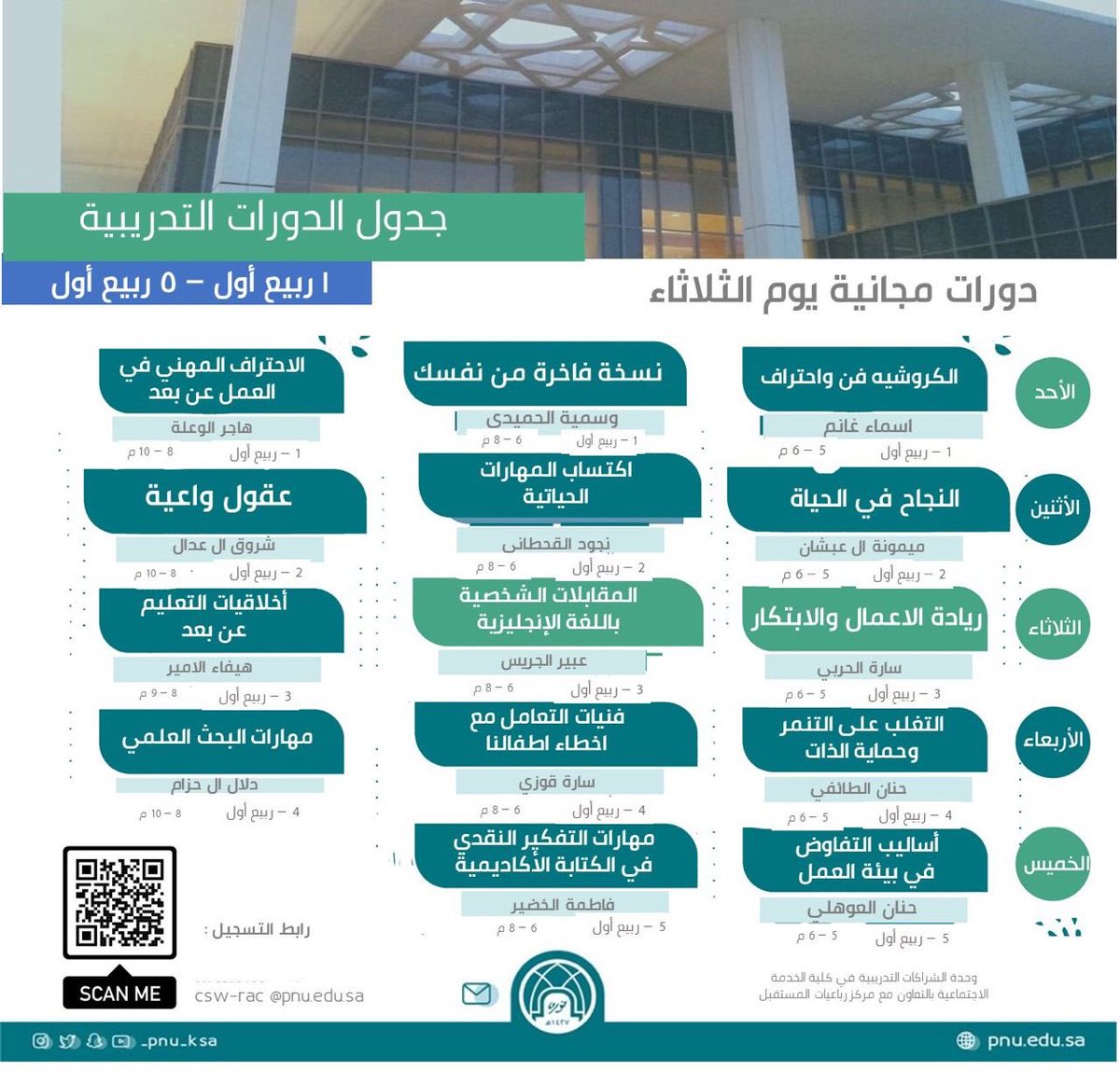 •يعلن مركز التدريب بكلية الدراسات التطبيقية وخدمة المجتمع #دورات_اونلاين متعددة بجامعة الملك سعود.