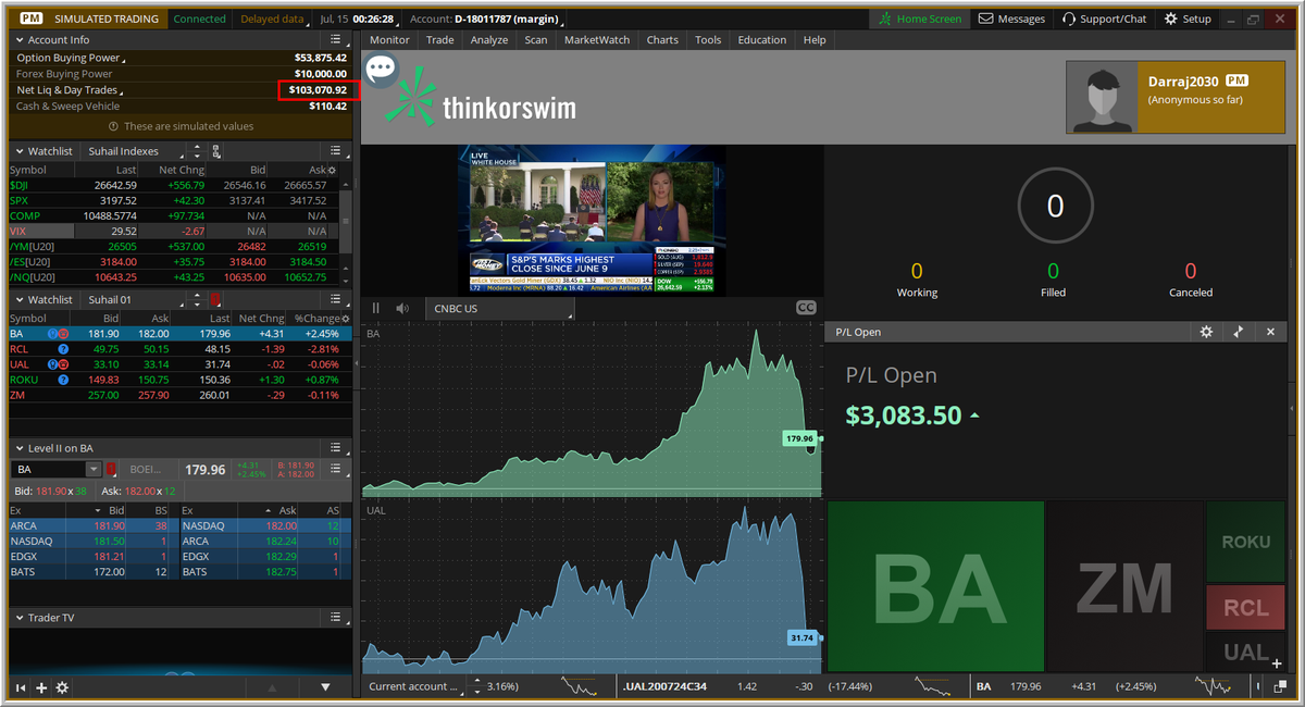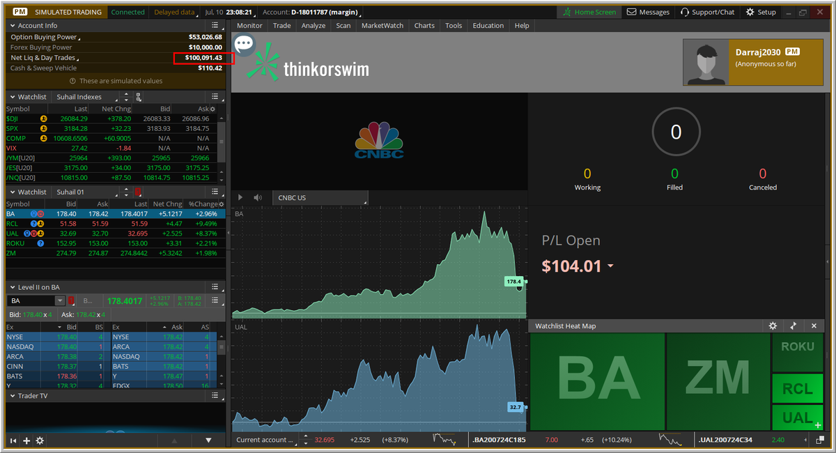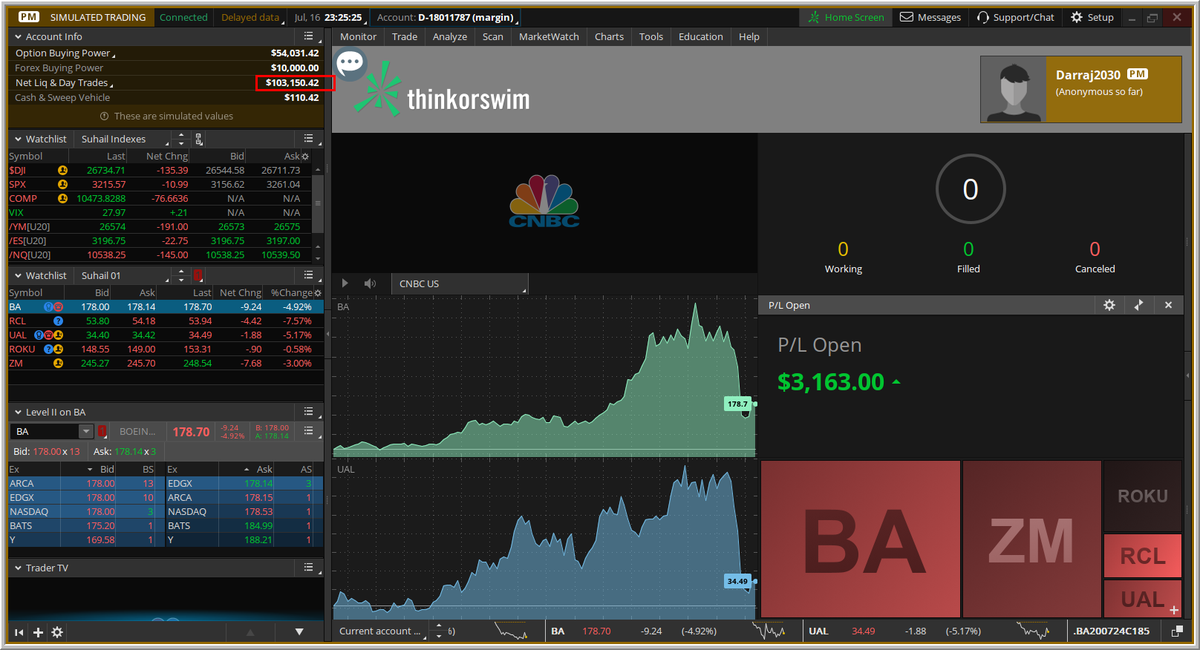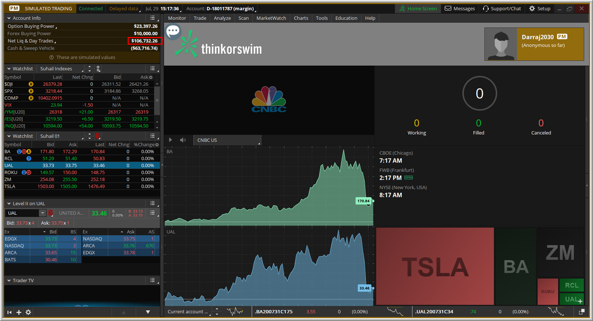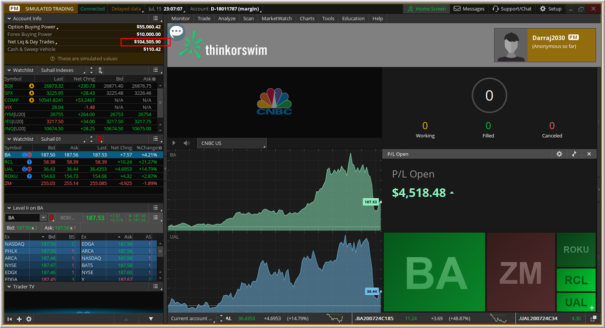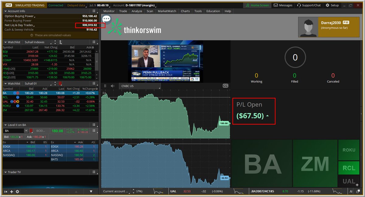 عدد الأوامر المنفذه (3) أوامر فقط ، ولن ننفذ أى شيء لمدة 20 يوماً، عملنا استثماري ولا نحتاج متابعة أو تنفيذ أى عمليات، كل يوم سنصور فقط مالذى يحدث (للمتابعة فقط) ، التنفيذ الجديد على المحفظة سيكون يوم الاثنين 2020/7/27