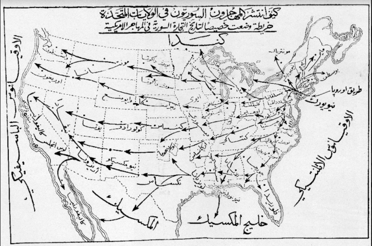 ...or by carrying goods or managing small-time commerce in small towns/rural spaces beyond the cities, as illustrates by this map of "peddling routes" printed in Syrian New York: