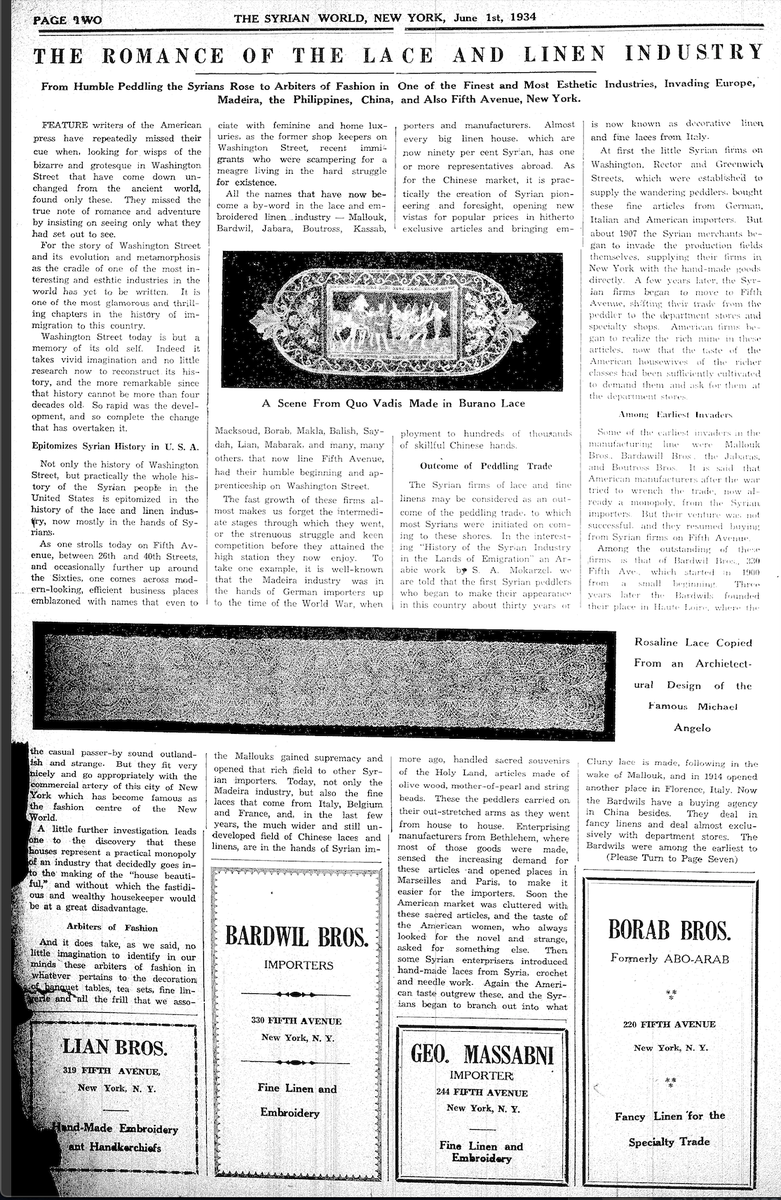 Syrian workers also labored in factories owned by Americans, but tended to favor jobs under Syrian immigrant proprietorship.