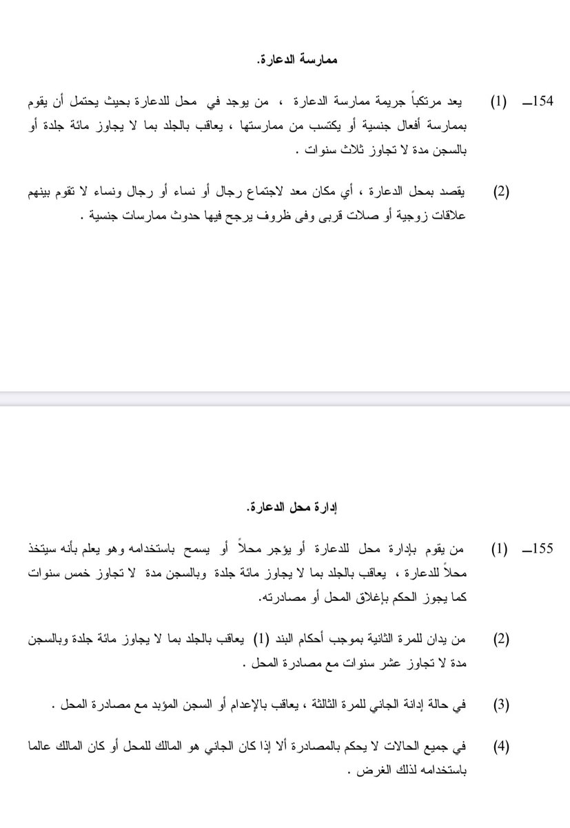 الغاء المواد ١٥٤ و ١٥٥ المتعلقة بجريمة ممارسة الدعارة واستبدالها بمادة جديدة تعاقب على الجريمة لكنها محكمة تقيد من اتساع نطاق التجريم لانها سابقا كانت مواد فضفاضة يتم استغلالها وتفسيرها من قبل السلطات المختصة بطريقة سيئة وغير عادلة