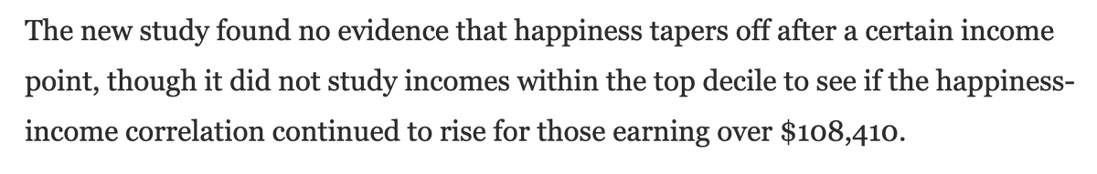 وكون دراسة توينقي لم تجد حداً لارتباط الدخل مع السعادة لا يعني بالضرورة عدم وجود ذلك الحد لأن دراسة توينقي لم تستمر في الاستبيان مع مجموعات الدخل المرتفعة أكثر، حسب مقال Washington Post