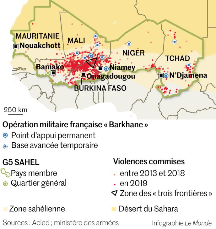 في بواكير 2019 تكررت مجموعة من المظاهرات ضد الوجود الفرنسي في الساحل، وسطت موجة كراهية ضد فرنسا. لمعالجة الموضوع نظمّ الرئيس الفرنسي قمةّ مع رؤساء الساحل. القمة الشهيرة التي كررّ فيها الرؤساء رغبتهم التعاون مع فرنسا، متجاهلة الأصوات الشعبية التي تطالب مغادرة فرنسا، وطلبت قوات
