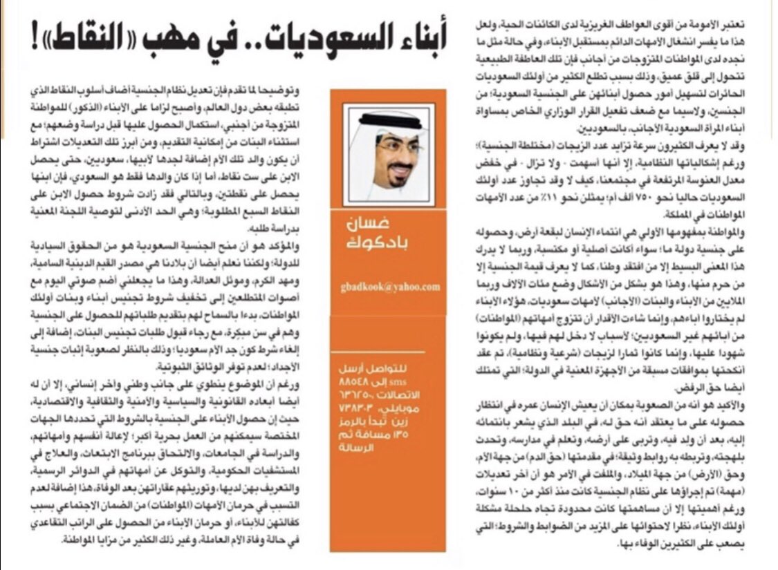 أرجو أن يتحلّى أعضاء #مجلس_الشورى الذين سبقوا أن رفضوا #دعم_أبناء_المواطنات؛ سواء بتجنيسهم أو بمنحهم إقامة دائمة، بالقدر الكافي من المسؤولية هذه المرة وأن يساهموا في إقرار المشروع المعروض حالياً "تحت القبة".