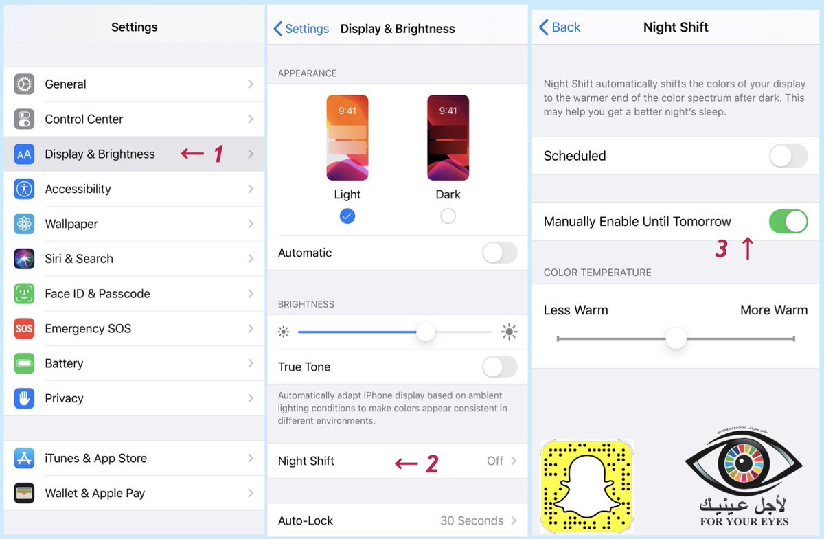 1️⃣ الضوء الأزرق الصادر من الأجهزة الالكترونية خاصة في الليل قد يؤدي الى مشاكل في النوم والإرهاق