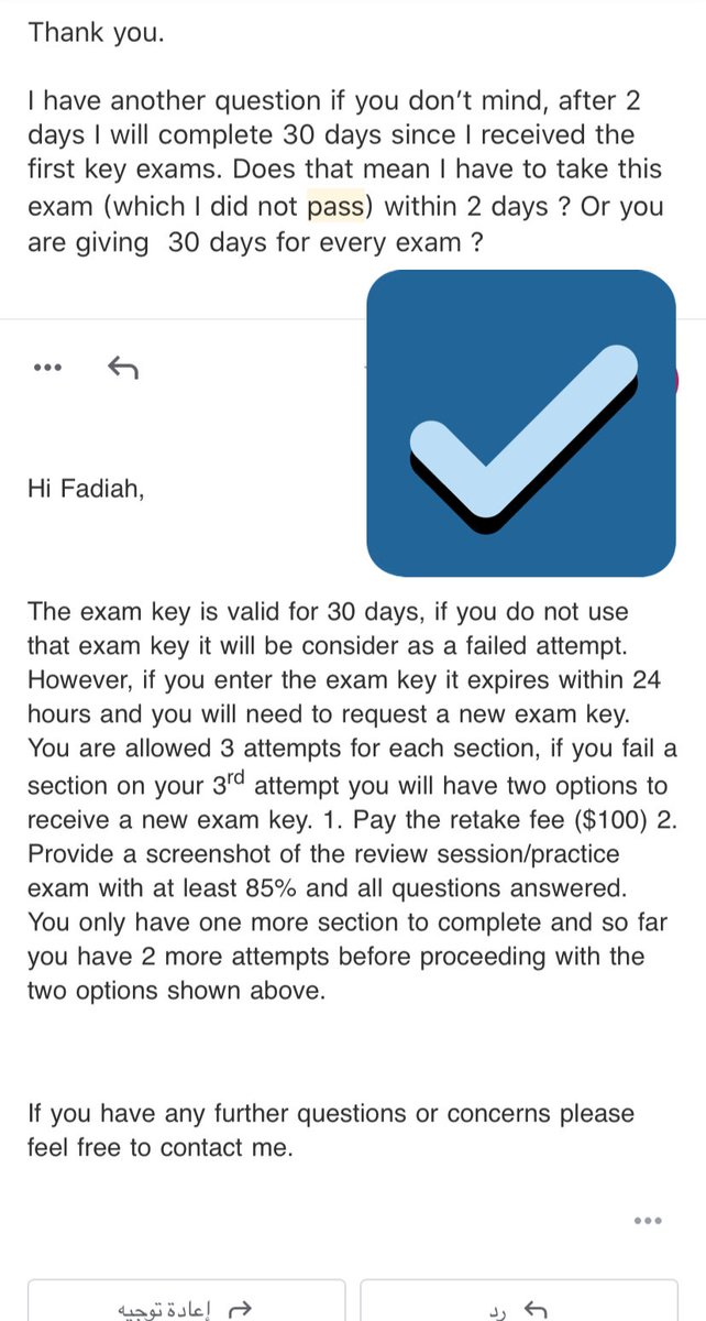 وبشارككم إيميل في مادةمانجحت فيها وكان وقتها العد التنازلي للثلاثين يوم بدأ يقرب من النهاية لدرجة ماقدرت أنام وقعدت أذاكر من جديد وأزعجتهم شوي بايميلاتي لأني خفت أرجع أعيد كل شيء من جديد😅