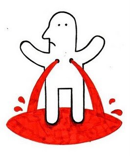 4. Loss of more than 2,000 cc of blood, more than 40% of your total blood volume. Your heart is racing, but you feel sluggish. Your blood pressure is very low. Your body is making little or no pee.