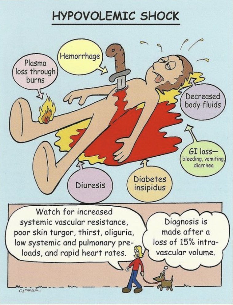 hypovolemic shock هي أكثر أنواع الصدمات شيوعًا ، كبار السن و الاطفال هم الأكثر عرضة للإصابة .