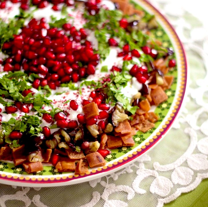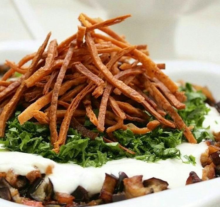 فته الباذنجان بالرمان والطحينه🍆🥗🌿