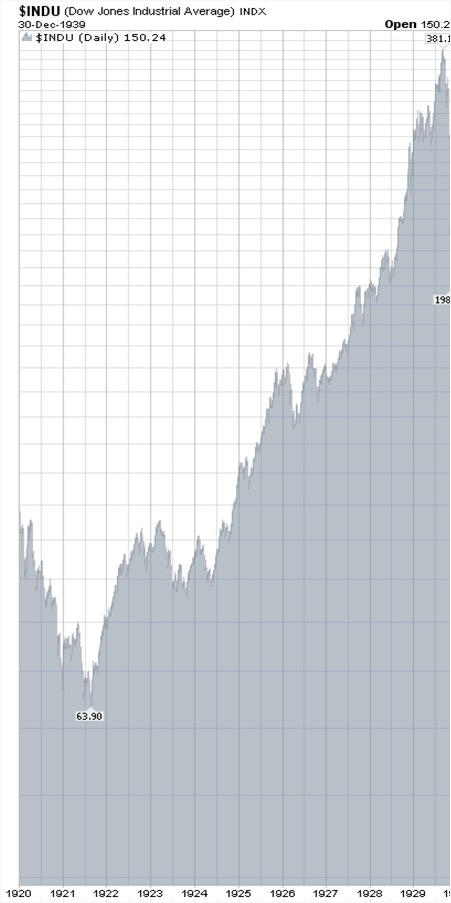 في العشرينيات من القرن الماضي شهد الاقتصاد الأمريكي طفرة نمو هائلة وزاد إجمالي الثروة بأكثر من الضعف ما بين عام 1920-1929 وأطلق على هذه الفترة "العشرينيات الصاخبة".