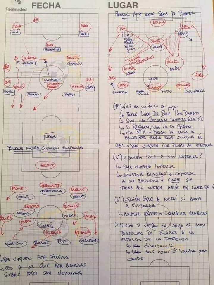 ورقة مسربة لخطة زيدان السرية في اول كلاسيكو له كمدرب ضد برشلونة
