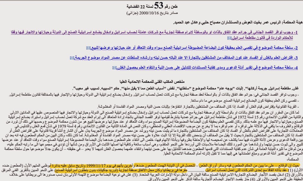 ١٣) ولكن تغيرت توجهات الدولة بعد ذلك التاريخ، ولم تعد ترفع قضايا ضد شركات تنتهك قانون "مقاطعة اسرائيل" مع أن "اسرائيل" لم تتغير في سياستها اتجاه الشعب الفلسطيني الأعزل والاراضي العربية المحتلة إلا إلى الأسوأ، حيث زادت من عدوانيتها في الوقت الذي نفتح لها أبوابنا للتطبيع
