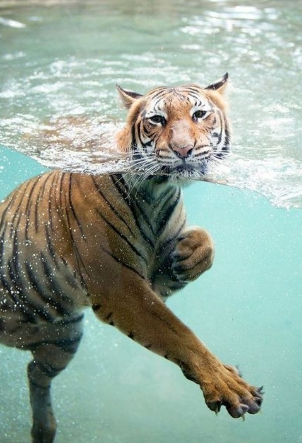 والنمور من فصائل القطط القليلة الي بتحب المي وبتحب تسبح. عشان هيك عندهم خاصية مميزة كمان باجريهم انو صار في بين أصابعهم زي غشاء يساعدهم عالسباحة نفس مبدأ البطة.