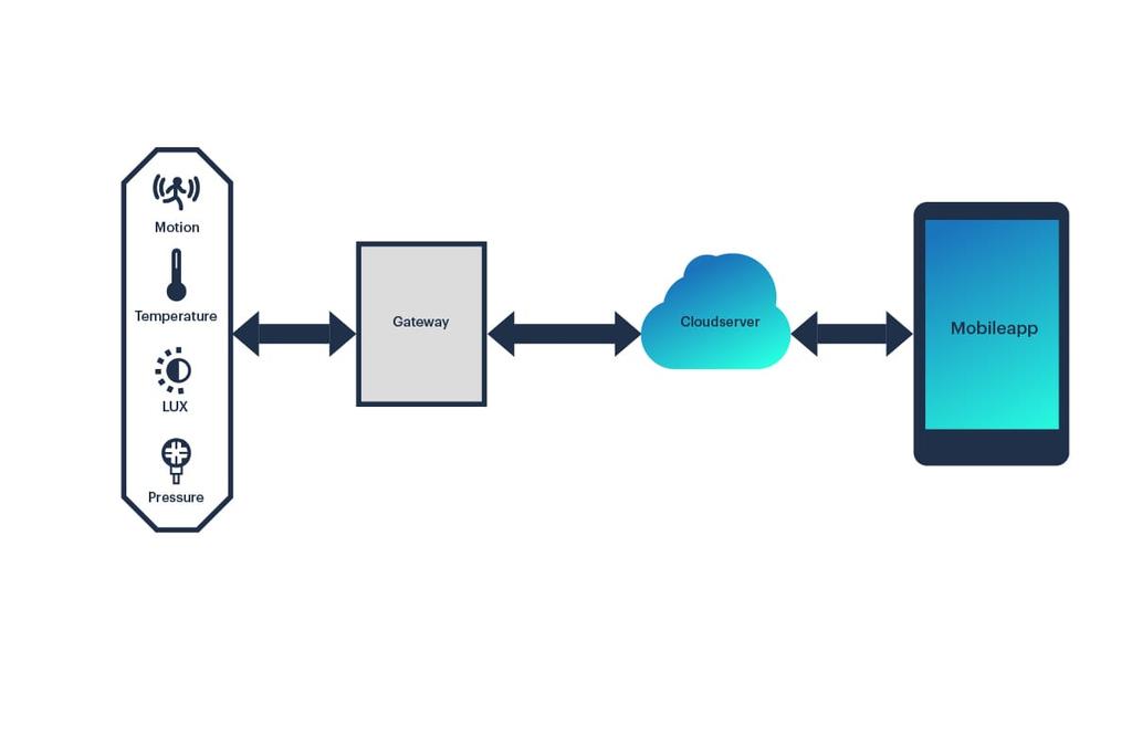يتكون نظام IoT من أجهزة الاستشعار والأجهزة (طبقة الجهاز) التي "تتحدث" إلى السحابة من خلال نوع ما من الاتصال. بمجرد وصول المعلومات إلى السحابة، تعالج شفرة الكمبيوتر ذلك بحيث تلتزم بتنفيذ إجراء مرتبط ب (طبقة الأعمال)، مثل تنبيه المستخدم…