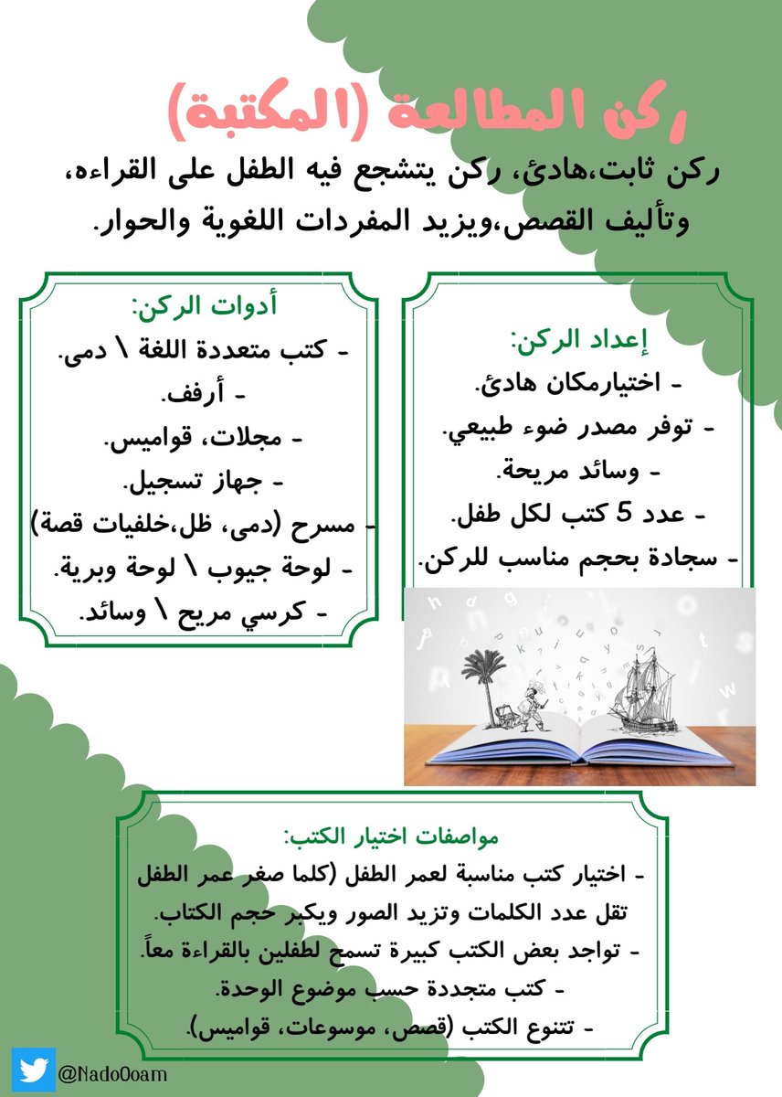 ٧. ركن القراءة والكتابة: