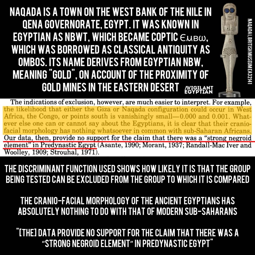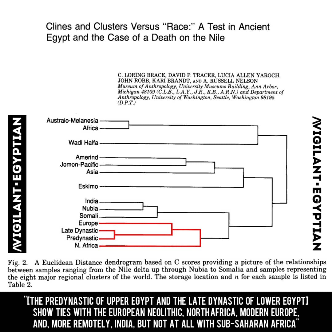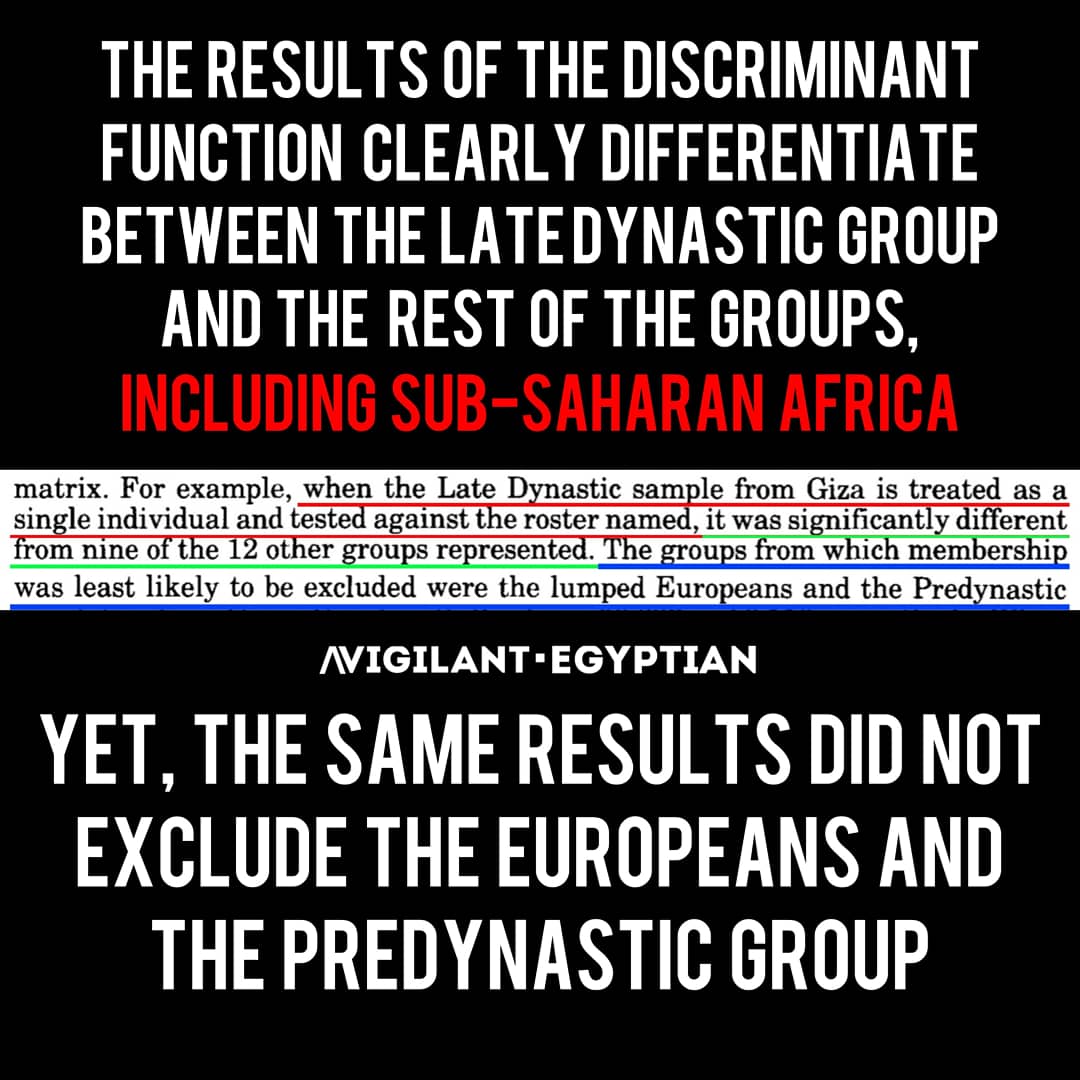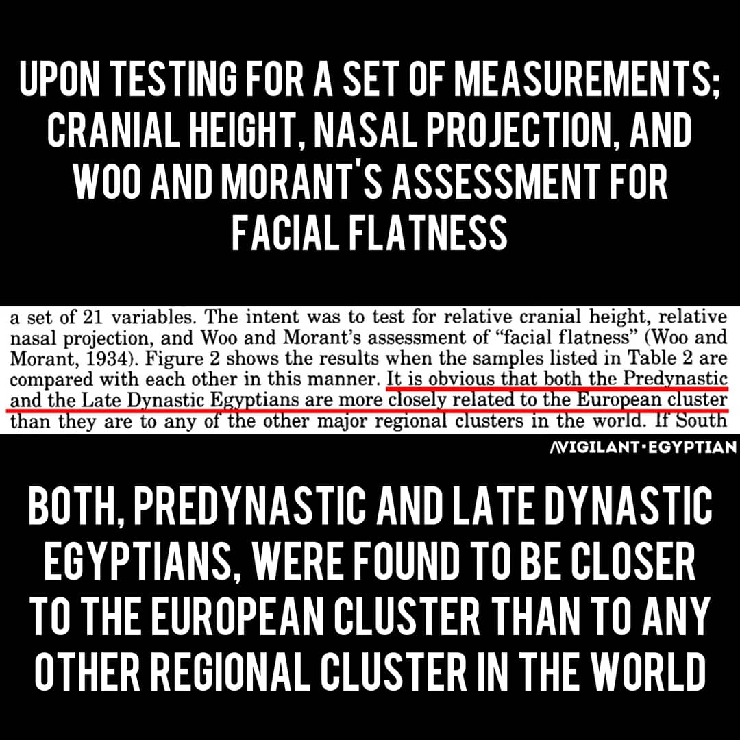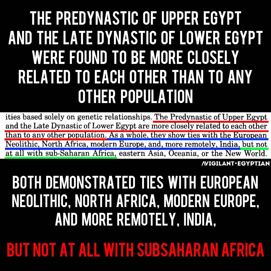 The Predynastic of Upper #Egypt and the late Dynastic of lower Egypt were found to be more closely related to each other than to any other population. Both demonstrated ties with European Neolithic, North Africa, modern Europe...; but, not at all with sub-saharan Africa.