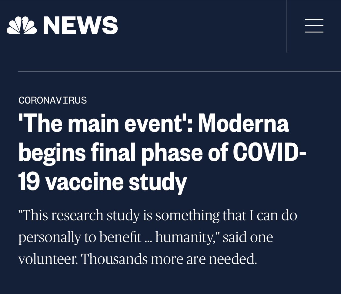 أمس أعلنت إحدى شركات الأدوية الامريكية Moderna أنها بدأت المرحلة الثالثة والاخيرة من تصنيع لقاح COVID-19
