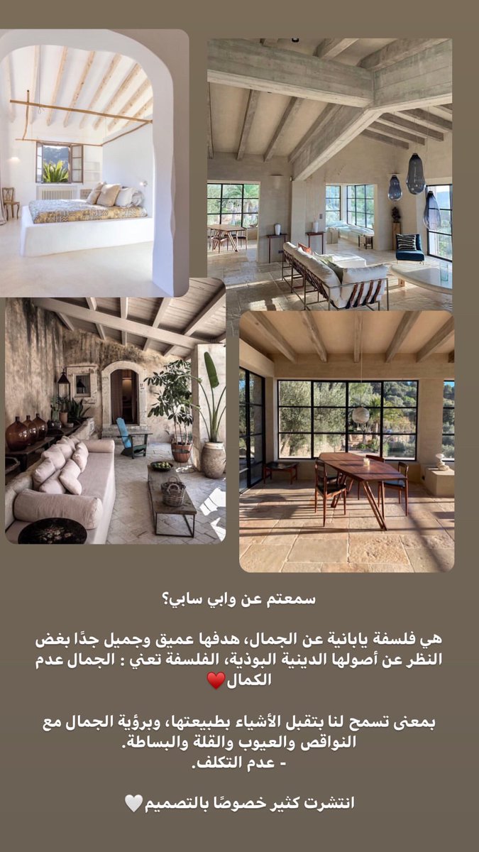 لأن النوردك والمتوسطي يهتموا بالخشب والمواد صديقة البيئة والالوان الاحادية، ولكنهم يعني يهتموا بالتناسق والتنظيم كثير، وابي سابي غير مهم التناسق أبدًا، وكلما كان غير متسق كلما كان أجمل.