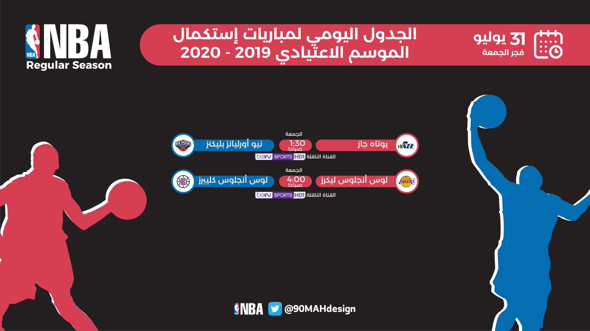اخيرا بعد توقف استمر لعدة أشهر بسبب #فيروس_كورونا تعود عجلة الدوري الامريكي لكرة السلة للدوران من جديد في مدينة أورلاندو , فلوريدا مقر التجمع لاستكمال الموسم وذلك بمباراتين فجر غدا الجمعة بتوقيت مكة المكرمة مساء اليوم الخميس بالتوقيت المحلي