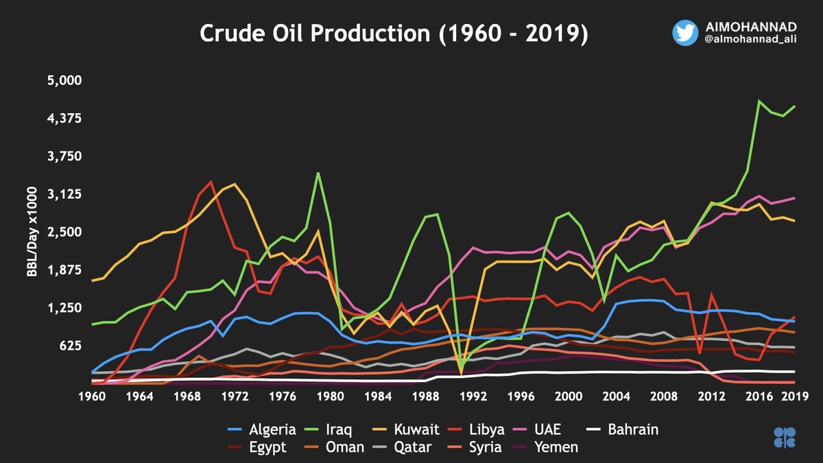 أرقام انتاج #النفط #الخام لبعض الدول #العربية من عام