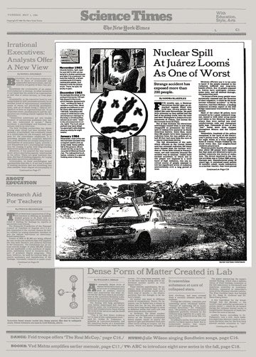 عام ١٩٨٣ في خواريز المكسيك، خلال نقل جهاز طبي ضخم من المستشفى لساحة الخردة، وبسبب الفضول قام فيسينتي وريكاردو بأخذ الجهاز للبيت وتفكيكه ليجدوا صندوق صغير فتحوه بالضرب بالمطرقة، وداخله مواد مشعة جدا☢️. بعدها حمّلوا الجهاز المفكك في سيارتهم "الددسن" وباعوه لساحة السكراب بـ ٨$