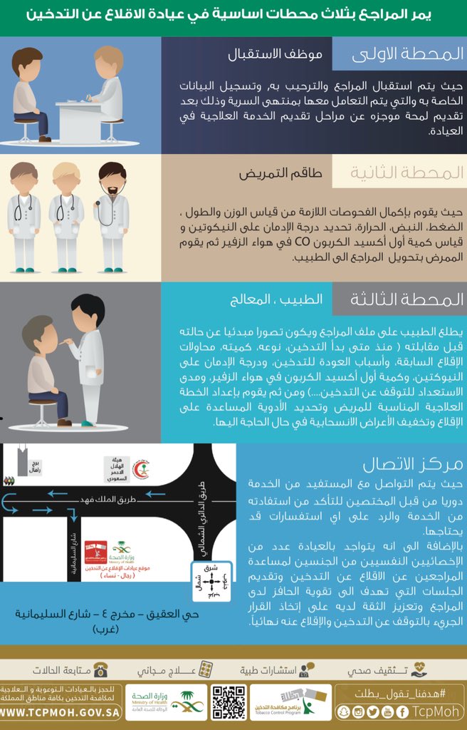 🔹لكل شخص حاب يحجز موعد عند عيادات الإقلاع عن التدخين في كافة مناطق المملكة يستطيع عبر الرابط: nctc.gov.sa