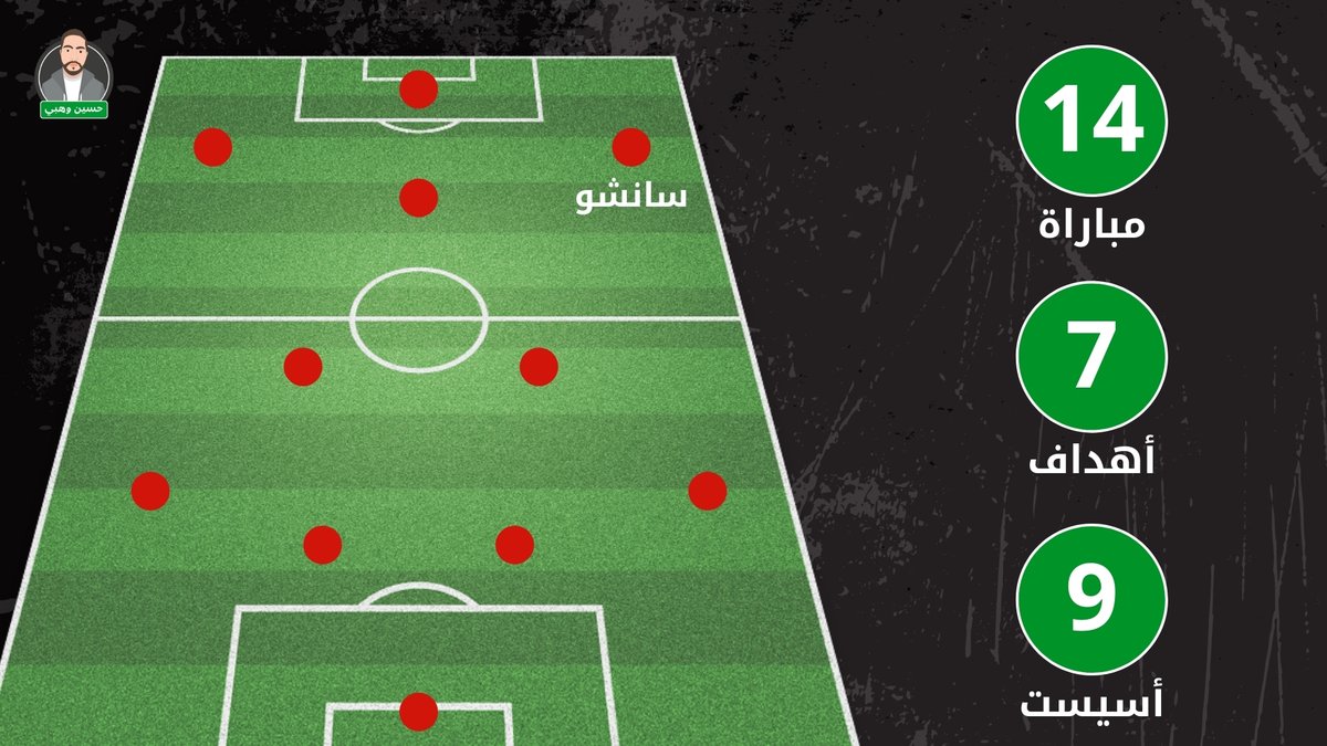 كجناح أيمن لعب #سانشو 14 مباراة شارك فيها بـ 16 هدفاً، كجناح أيسر لعب 7 مباريات شارك فيها بـ 11 هدفاً، وكوسط مهاجم لعب 11 مباراة شارك فيها بـ 6 أهداف.