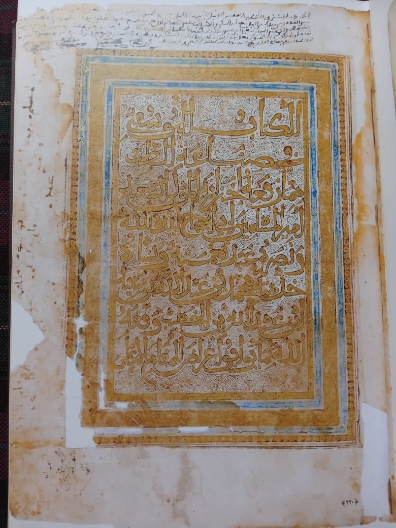 8- وقد كتبت هذه النسخة بخط أندلسي نفيس ؛ بمداد معدني أسود وذهب ؛ وألوان أخرى ؛ ذهب ؛ زخارف ؛ وألوان على ورق أندلسي فاخر عاجي اللون ؛ وجلدة الكتاب جلدة أصلية أندلسية قديمة ترجع إلى عصر المخطوطة ؛ مزخرفة ومذهبة ؛ غرناطة ؛ الأندلس ؛ حوالي سنة 751 ه / 1350 م ؛ عدد الأوراق ( 202 )