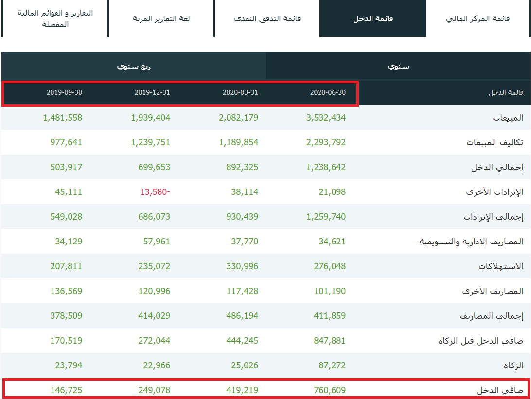 جميع ارقام صافي الدخل للارباع الماضية مضروبة في ١٠٠٠