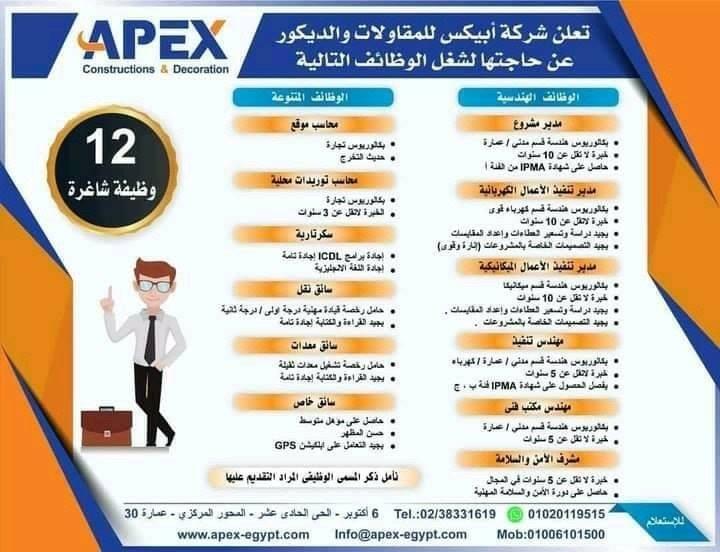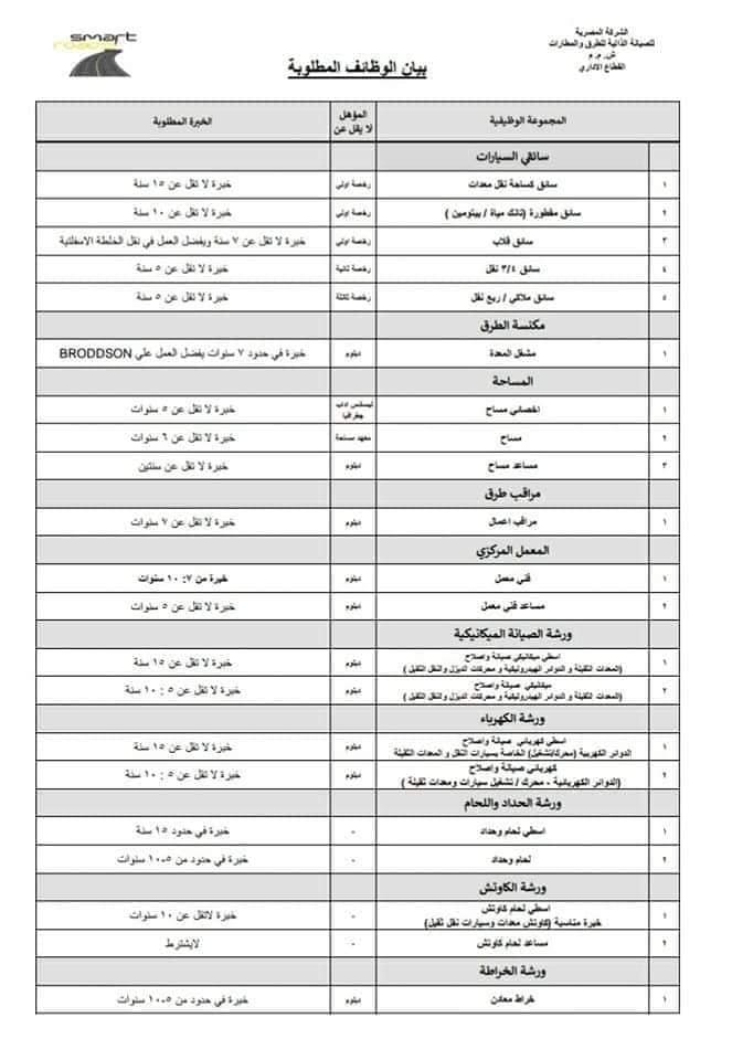تعلن الشركة عن حاجتها لبعض الوظائف في التخصصات الموضحة فيما بعد بالمرفق : يتم تقديم السيرة الذاتية وشهادات الخبرة من خلال : Email: info@egysmartroads.com