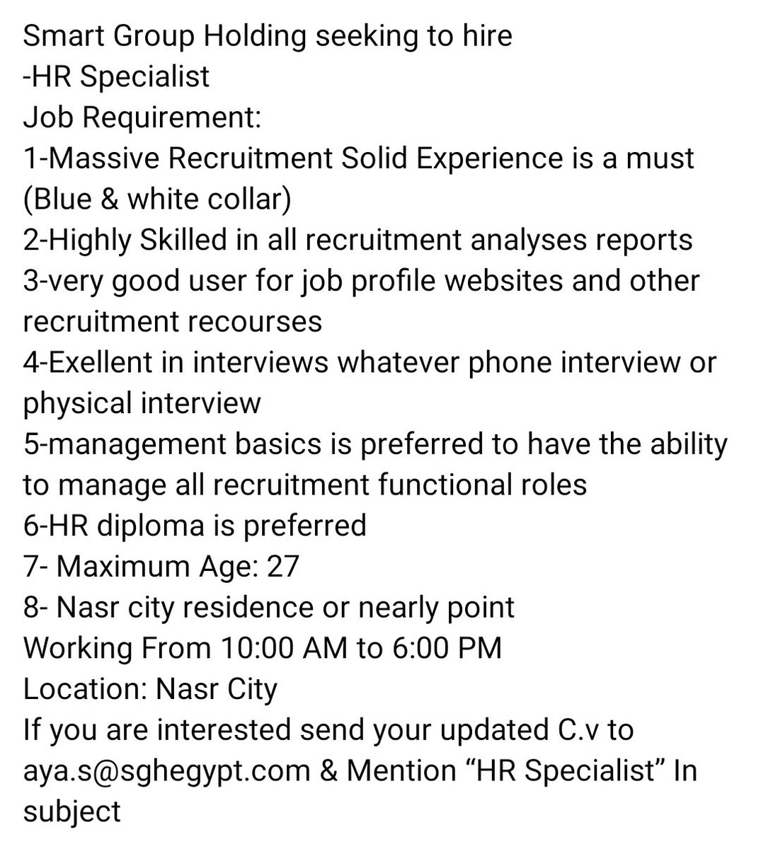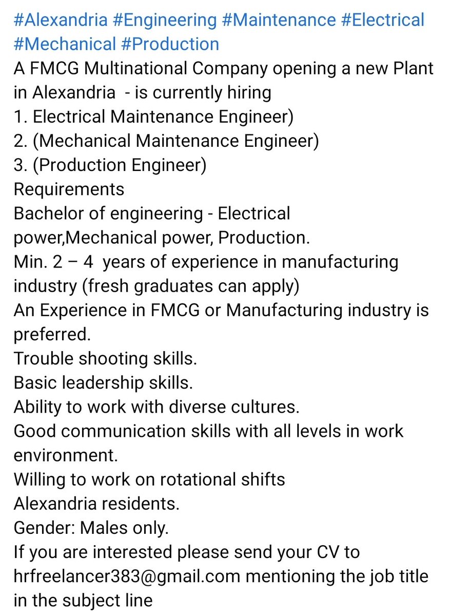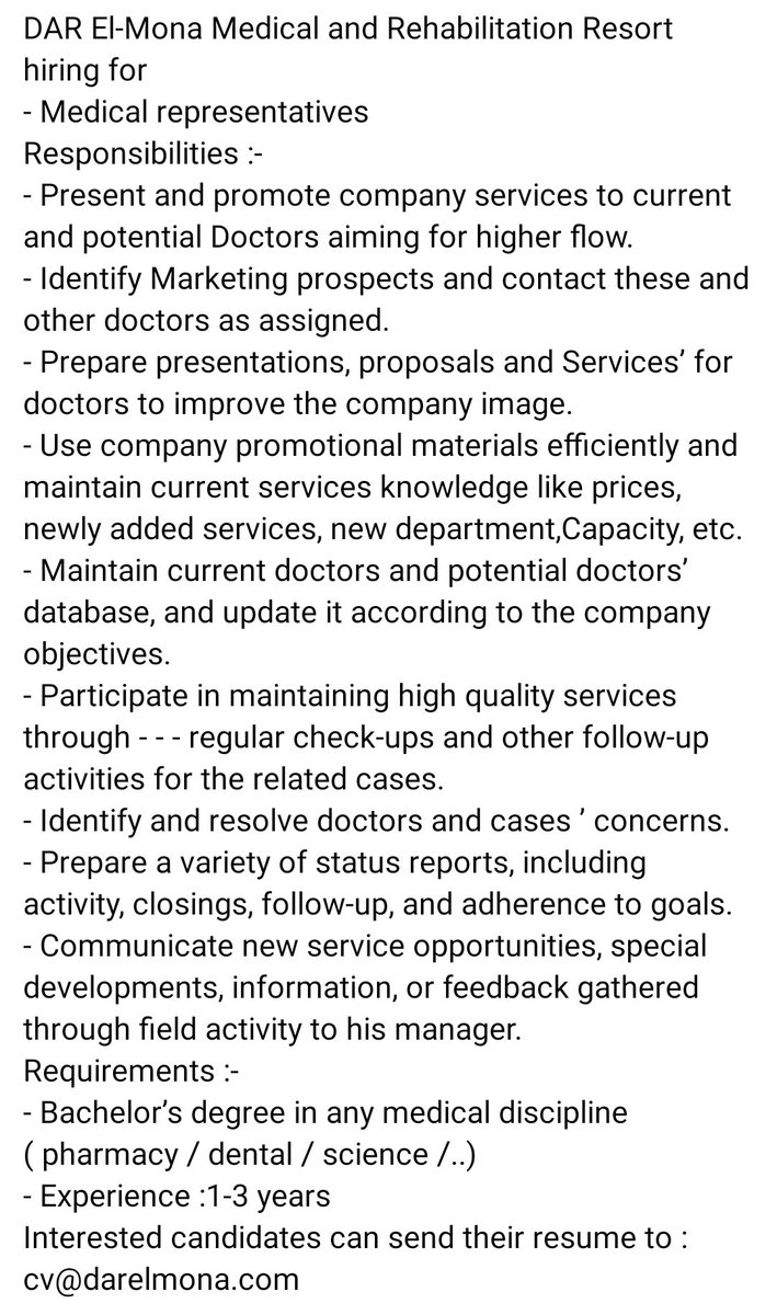 للتواصل يرجي إرسال c.v ع الواتس _ ٠١٠٦٨٨٤٨٥٤٢ .