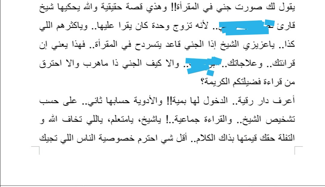 ..... لن يسمح لها فضيلته بذلك حتى لا تسبب لي العمى (يا جعله بالعمى) ستتوجه لساقي و قدمي و ستهتز و ترتعش حتى تغادر جسدي بعد أن تعاهده على عدم العودة