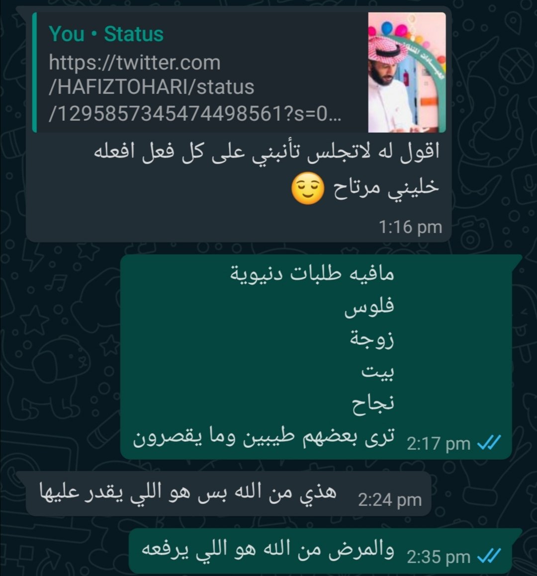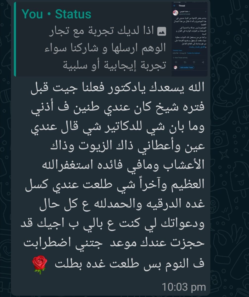 و مما شجعني للاستمرار هو مراجعة أكثر من حالة للعيادة بعد قراءة التغريدات و استبصارهم يما كان يروج له أصحاب الوهم