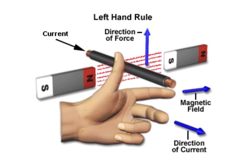 ٢-بما أنه لدينا مجال مغناطيسي متغير وقضبان ثابتة إذن سيتولد جهد داخل القضبان ومن ثم تيار حسب قاعدة اليد اليمنى.