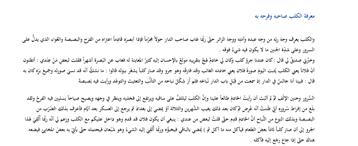رجعت لكتاب الجاحظ "الحيوان" اللي جزء مهم منه بيتكلم عن الكلاب وفضائلها، ولقيت فيه تقدير عجيب للكلاب: