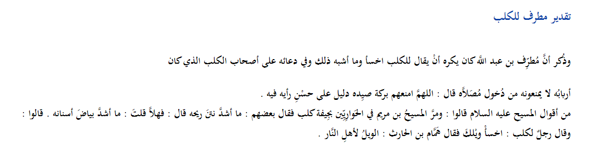 فلا النصوص ولا التاريخ ولا المجتمع كان عنده الكراهية الغريبة دي للكلاب، ومش شايف إلا إنها تعنت وهوى ولوي لأعناق النصوص من المتأخرين، زيها زي الشيوخ اللي حرموا التصوير ولما طلعت الفضائيات الدينية تسابقوا على أماكنهم فيها..