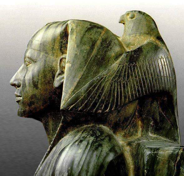البشر علي نحت مثل هذا التمثال بهذا الجمال و الدقة و الأتقان مهما استعملوا من أجهزة العصر..ثمثال جدكم واحد من معجزات البشرية عبر تاريخها الطويل...الملك خفرع يحوطه الصقر حورس الحارس ...و من إعجاز الفنان ايضآ انك لا يمكن أن تري الصقر حورس ألا من الجانب أما من الامام لا تري ألا