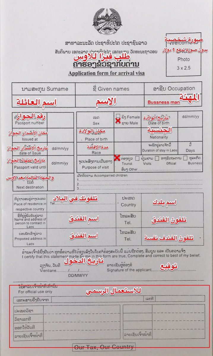 عند سفرك الى لاوس ، خلي معك صورة مطبوعة من الموافقة الفيزا، لتقديمها لمكتب الجوازات المطار او الحدود