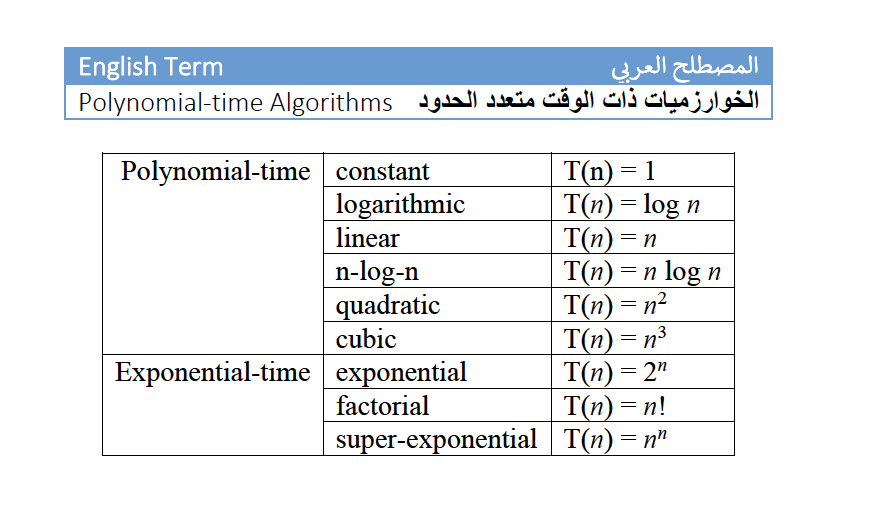 أي المعادلتين تمثل خوارزمية كفاءتها أفضل؟