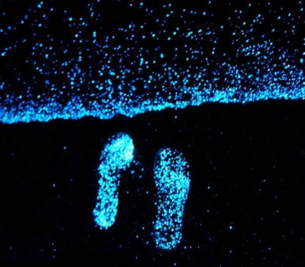 ويرجح بعض الباحثون أن هذه العوالق النباتية والميكروبات البحرية تظهر هذه الأضواء المتلألئة نتيجة تركيبها البيولوجي والكيمائي الذي يحوي مواد فسفورية مشعة تسبب هذه الأضواء المتوهجة وأنها تخيف الحيوانات المفترسة عندما تتحرك في الماء فتبعدها بعيدا عن الشاطئ كذلك