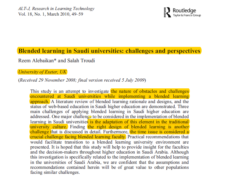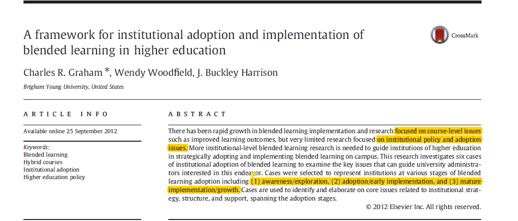 يشير الباحث في هذه الدراسة لعدة نماذج ومراحل ل #التعلم_المدمج